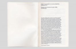 This second issue of from the Bunker presents a small and arbitrary selection of his much larger collection. The book is organised by the names of various exhibition spaces operating during that period in alphabetic order (with tabs on the fore edge). Overall the collection provides of map and timeline of the London art scene at the time covering the whole range of spaces showing art: from temporary outfits in private flats to institutional museums, from commercial galleries to project spaces. The collection ultimately speaks for the energy and dynamism of the period and the level playing field in which diverse would-be-artists showed and shared their work. It also reflects the unique position of Douglas Park as both actor and witness on the scene. In that perspective those artefacts are not merely remnants of temporary exhibitions and events but literally cue cards to Douglas Park’s total recall: a complete work of art redrawing the boundaries of time and space. Together they are not merely a nostalgic exercise but an attempt at redrawing the historical narrative of the period and its overlooked productions.